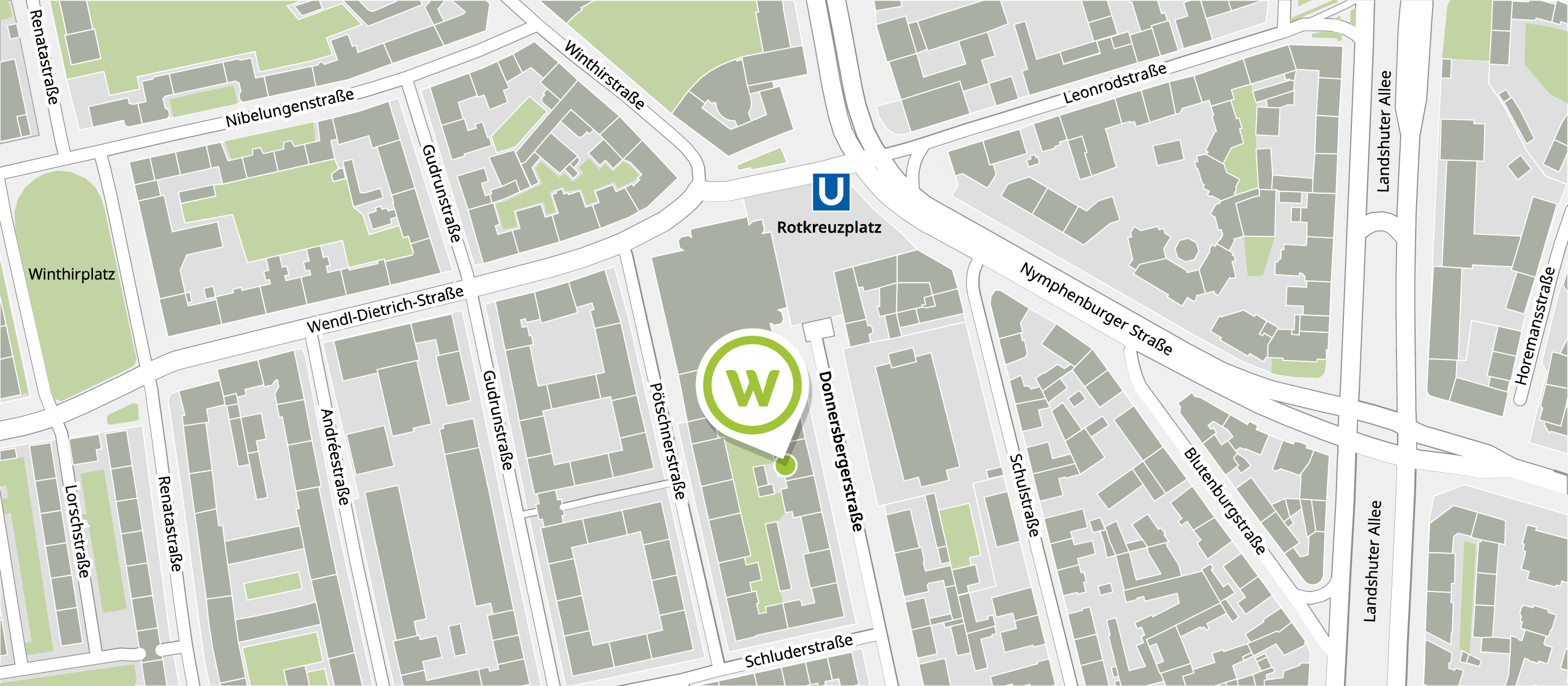 From Munich city centre, take the U1 underground line towards Olympia-Einkaufszentrum and get off at Rotkreuzplatz. From there, it is about a 2-minute walk.