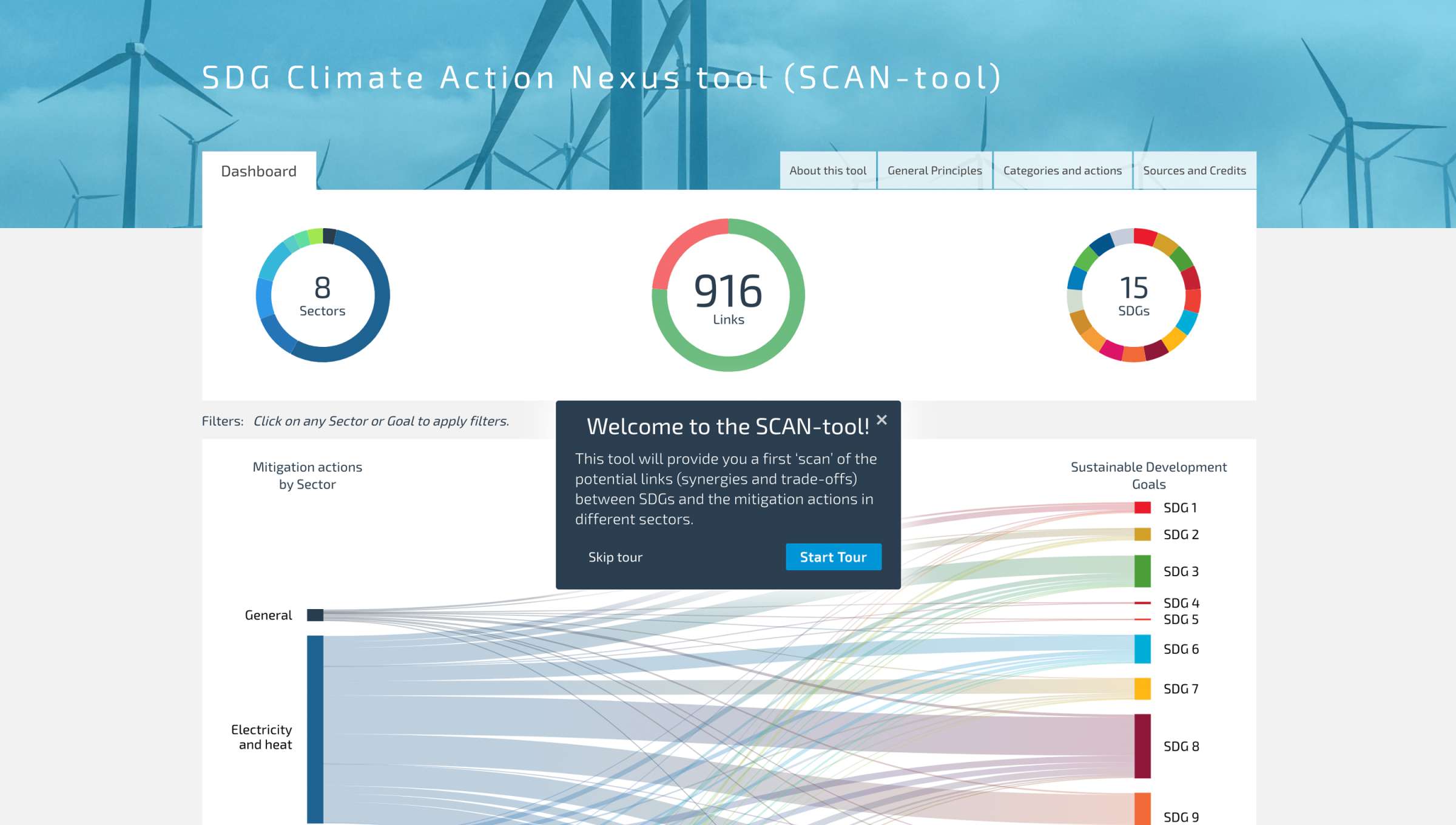Das SCAN-tool (SDG Climate Action Nexus tool) visualisiert den Einfluss einzelner Klimaschutzmaßnahmen auf die 17 Klimaschutzziele der Vereinten Nationen.